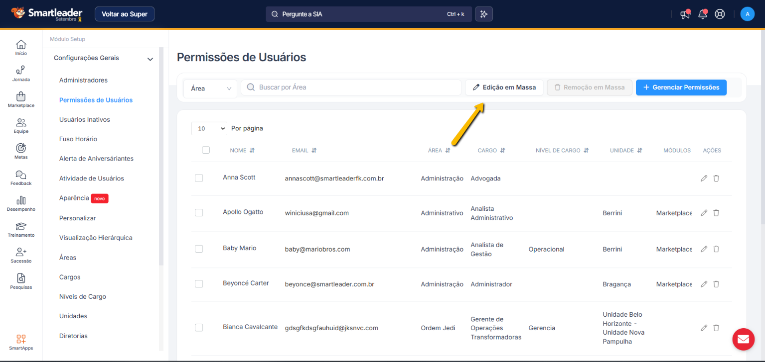 - É possível Editar de forma massiva: