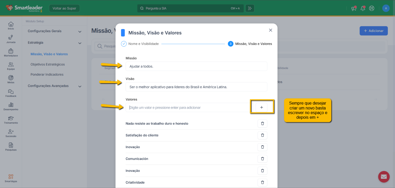 Estratégia - Missão, Visão e Valores