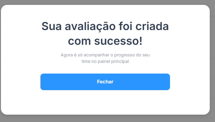 8 - Prontinho, avaliação criada com sucesso!