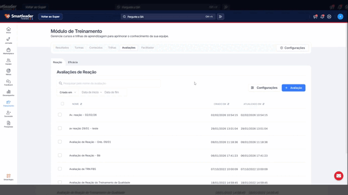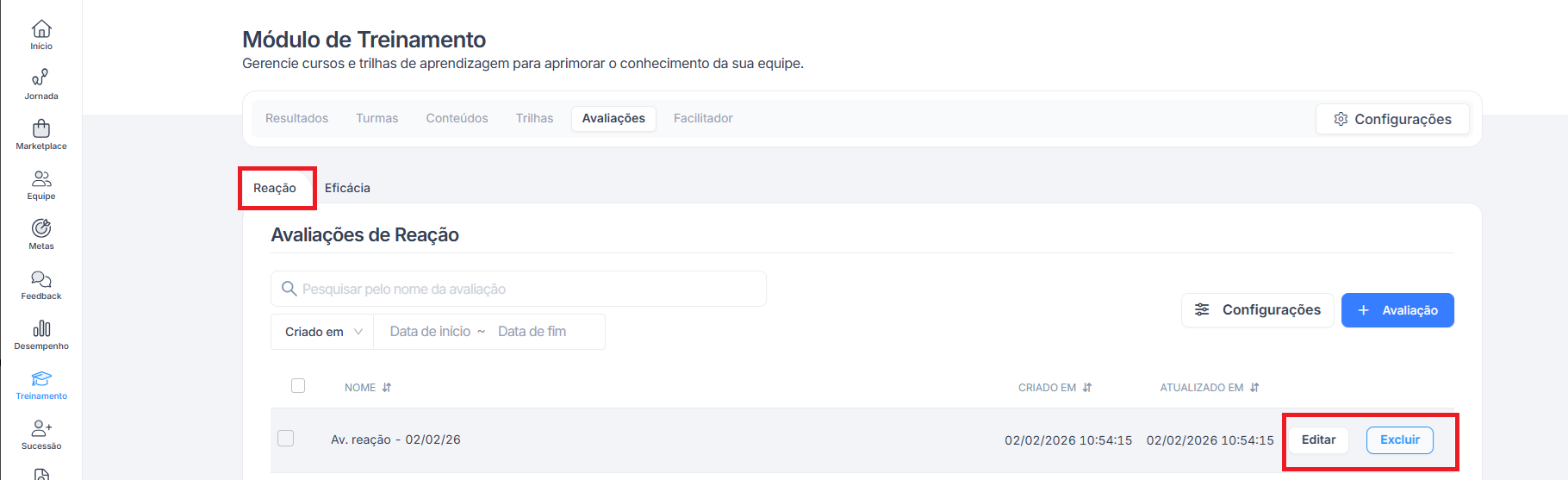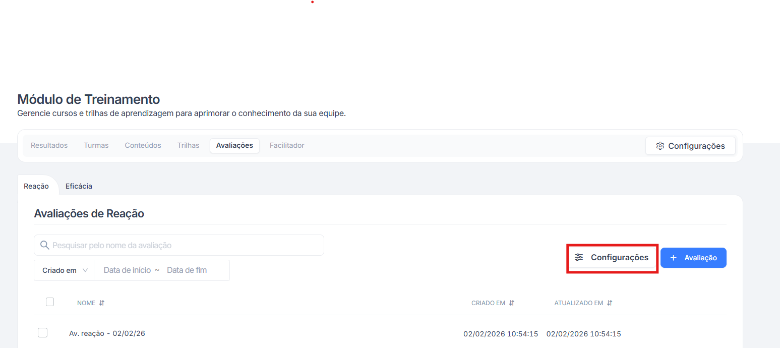 - No Módulo de Treinamento, clique na aba "Avaliações";