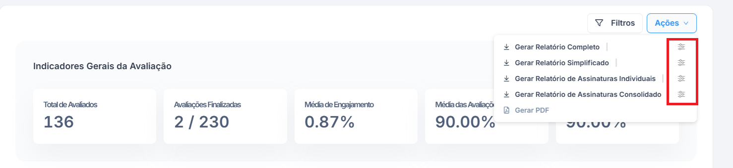 1 - No ícone que nos permite as exportações, há o símbolo de configuração, como na imagem abaixo: